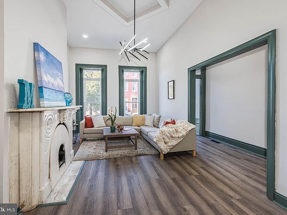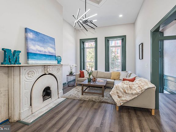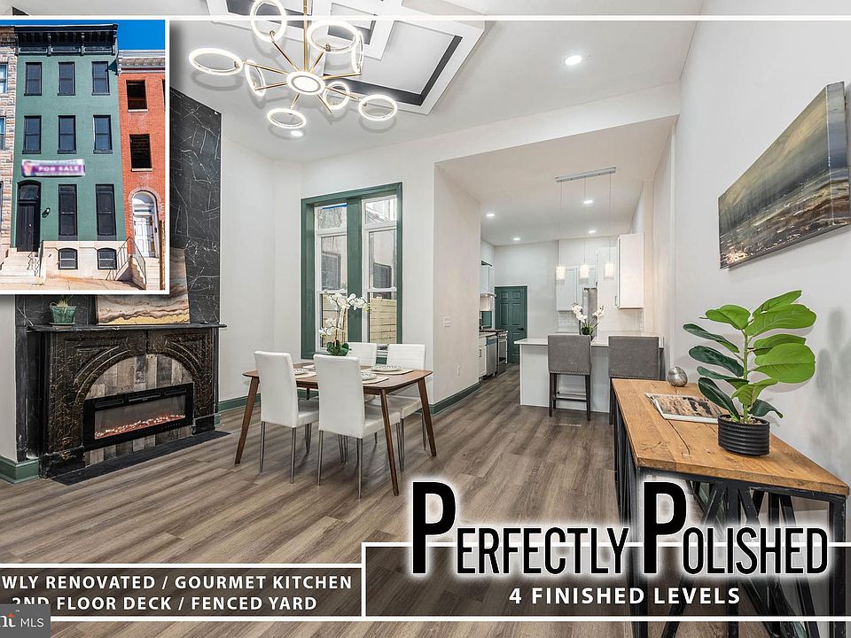 Stunning Harlem Park Renovation with Designer Finishes & Four Levels of Luxurious Living! Welcome to this beautifully reimagined home where style meets substance in every detail. Step into an inviting living room highlighted by a charming decorative fireplace, leading to a formal dining room warmed by a sleek electric fireplace—perfect for intimate gatherings or entertaining guests. The gourmet kitchen is a chef’s dream, featuring stainless steel appliances, Quartz countertops, and contemporary finishes that blend elegance and functionality. Enjoy the convenience of a main-level powder room and retreat upstairs to your expansive Primary Suite, complete with a spa-inspired bath showcasing a large walk-in shower. The second level also hosts two spacious bedrooms and a full hall bath featuring both a separate shower and a deep soaking tub—ideal for relaxing after a long day. The fully finished basement offers a versatile family room, perfect for movie nights or a home office setup. Outside, enjoy a private rear patio and a second-level deck, ideal for al fresco dining or summer lounging. Situated in the revitalizing Harlem Park community, this home is just minutes from downtown Baltimore, UMMC, stadiums, and major highways. With renovations transforming the neighborhood, there's never been a better time to buy. Pack your bags—your dream home awaits!