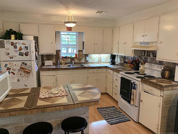 This is a perfect home for a first time homebuyer! This home sits on a double corner lot in the heart of Sallisaw! Fenced in yard for your fur babies. Central heat and air will keep you comfortable all year long. Oversized garage to put all your toys! Newer roof per current owner. Enjoy sitting out on your covered back and front porches! Come take a look today!