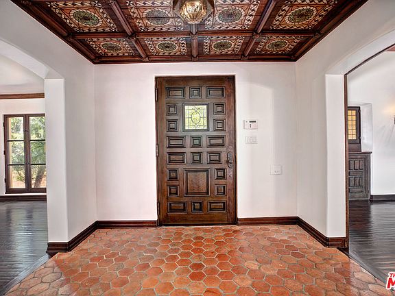 Redone and romantic gated character Spanish on the most coveted camphor tree-lined road in the Flats of Beverly Hills. Authentic charm imbues the entire home along with sensitive cosmetic upgrades. Features include distressed wood floors, French doors, and beams. Fabulous cook's kitchen combines with a large family/great room opening to extraordinarily private and beautiful grounds with patios, lawns, BBQ center, pool/spa, large storage room, and mature hedging. 3 generous bedroom suites upstairs and 2 guest suites (possible 2nd master) downstairs. Huge master suite upstairs with fabulous bath and enormous walk-in. Tremendous off-street parking. Enhanced by intense curb appeal, this gem is ready for you to call it "home".