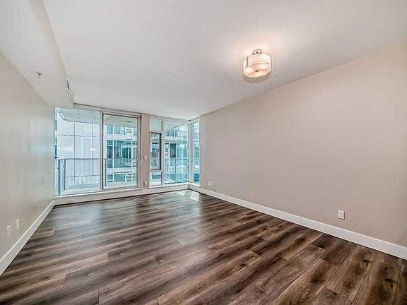GREAT LOCATION in Downtown!!This condo in the heart of the desirable EAST VILLAGE is priced to sell. A 1 bedroom + Den in the Fuse tower , Laminate floors in entry, kitchen, living, dining & den. Floor to ceiling south facing energy efficient windows. Stylish interior features glossy white lacquered upper & wood-grain veneer lower cabinetry, granite counters with full-height backsplash & under-mount sink. 4 pc bath w/ granite vanity top & radiant heated floors. . Full sized front loading washer & dryer. Secured parking for residents & evening parking for visitors. Fully equipped fitness Centre & concierge services