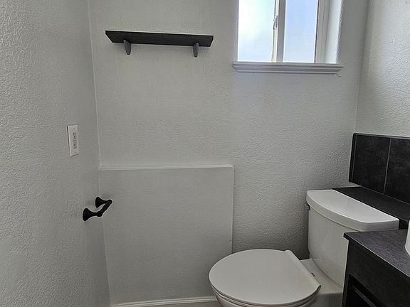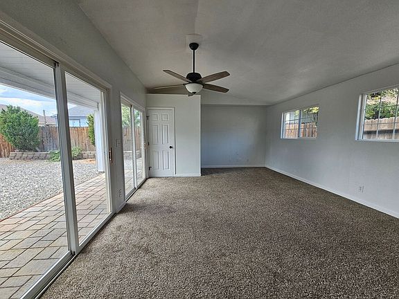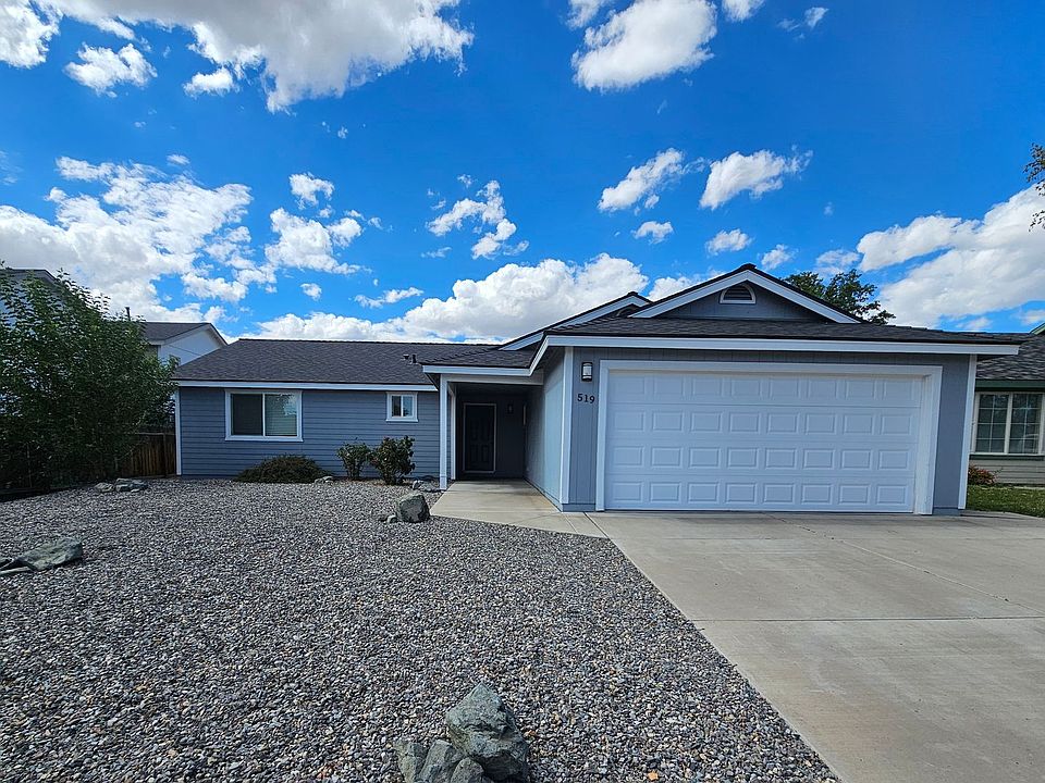 Stylishly updated 3-bedroom, 2.5 bath home offering 1,656 sq feet of comfortable living space and a finished 2-car garage. The kitchen features butcher-block countertops, all-new cabinetry, stainless steel appliances, an upgraded sink, modern hardware, and contemporary lighting. Central A/C to keep you cool all summer long. Both bathrooms have been fully renovated. The second bathroom features a tub/shower combo, while the primary suite offers a spacious walk-in shower. The entire home features durable luxury vinyl plank flooring with carpet in the bedrooms. Barn doors separate the family room, offering a flexible space ideal for a home office, den, playroom, or optional fourth bedroom. Modern ceiling fans and updated lighting fixtures have been installed throughout. Enjoy outdoor living on the covered patio, perfect for summer BBQs. A large backyard shed provides ample storage, and the front yard has been zeroscaped for low-maintenance. The washer, dryer, and refrigerator are included with rent. Dog on approval. Sorry, no cats!