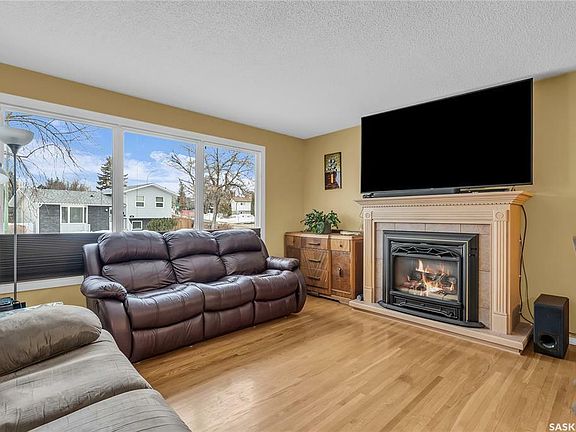 1092 square foot 3-bedroom bungalow in Lawson heights on a corner lot featuring air conditioning, hardwood floors in the living room, dining room and hallway,2 gas fireplaces 1 up one down. Nice open floor plan with the master bedroom featuring a 2-piece bath. Upgraded 4-piece bath on the main plus a fully developed basement with a huge rumpus room and a 3-piece bath, bedroom and a 2nd bedroom no window so a den, gas fireplace and an open layout. Fully developed yard with a patio, green space, underground sprinklers. Single attached garage fully finished with radiant heat. Natural gas hook ups for the barbeque and fire pit. Home also features newer shingles and eaves and windows. Garage also has cold and hot water taps and 220 power. Great family home in a great area with great street appeal.