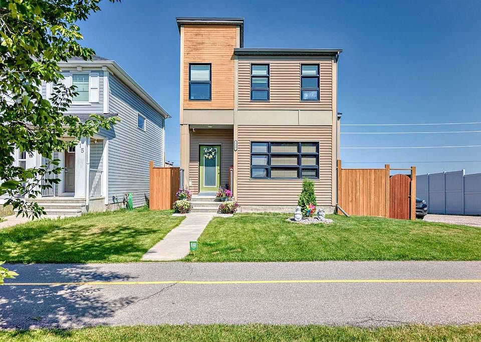 OPEN HOUSE OCTOBER 3 & 4 (FRIDAY & SATURDAY) 1:00 TO 5:00pm. This stunning detached home sits on a desirable corner lot in the vibrant community of Copperfield. As you step inside, you're greeted by a bright open-concept floor plan with soaring 9-foot ceilings. The main level features a spacious living room with a cozy fireplace feature wall, a welcoming dining area with an eating bar, and stylish tiled entries at both the front and rear. The heart of the home is a modern chef's kitchen, complete with ample cabinetry, quartz countertops, stainless steel appliances which were all replaced in 2021. Just off the kitchen, you'll find access to a beautiful deck with a pergola-perfect for morning coffee sips and BBQ with family and friends. A powder room completes the main level. Upstairs, the impressive primary bedroom boasts a walk-in closet and a 4-piece ensuite, plus two additional well-sized bedrooms and a full bathroom. The laundry is also located in the upper floor for easier access. Washer and dryer was replaced in 2022. The fully developed basement offers a large family or recreation room with laminate flooring, plus a versatile den area-ideal for a home office or computer nook. Live comfortably with your centralized airconditiong installed in 2023. Hot water tank was also replaced in 2024. Additional upgrades include the gemstone lights at the front, side and back of the house. With a double detached garage, fenced yard, and backing onto wetlands, this is the perfect family home- move-in ready and packed with value. Close to Stoney Trail and Deerfoot Trail, a must-see home!