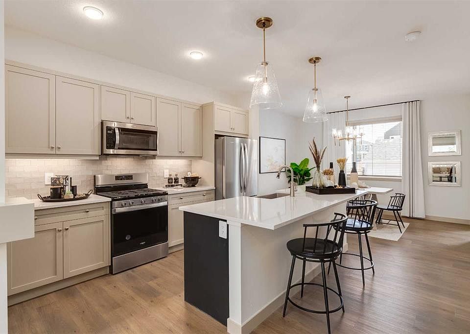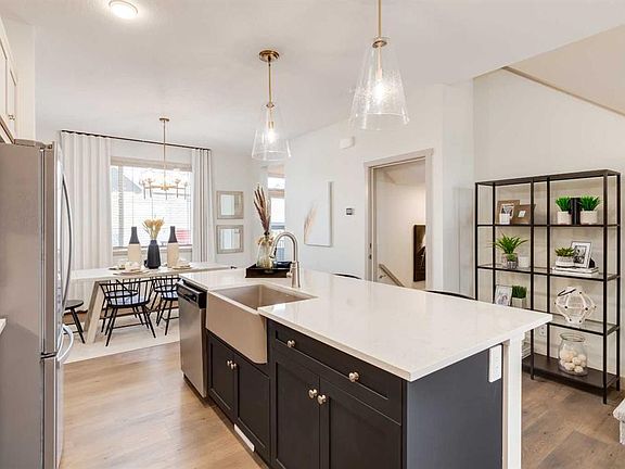 SOME HOMES ASK YOU TO COMPROMISE; THIS ONE JUST STACKS UP THE ADVANTAGES. Set on a SOUTH-FACING LOT in Lanark Landing, this brand-new Alexis model from Homes by Avi makes the most of every inch of its 1,508 sq ft. The curb appeal begins with a covered front porch, but it’s what happens once you step inside that really seals the deal. Nine-foot ceilings on the main floor set the tone for an open, airy flow, grounded by luxury vinyl plank flooring that’s built to handle daily life. The kitchen pulls its weight with 42" UPPER CABINETRY, QUARTZ COUNTERS, a Silgranit undermount sink, and a full stainless-steel appliance package. The electric range is ready to cook from day one, with a gas rough-in in place if you prefer the flame. A pantry tucks neatly out of sight, recessed lighting keeps the mood bright, and the dining area at the back leads to a mudroom and rear deck for easy indoor-outdoor meals. Upstairs, the primary bedroom proves it’s more than just a place to sleep: a generous walk-in closet, a quartz-topped vanity, and a glass-doored shower turn routines into rituals. Two additional bedrooms share a full bath, while the laundry room is exactly where it should be—upstairs, with the bedrooms, so baskets don’t migrate up and down the stairs. The details here are future-focused. A SIDE ENTRY DOOR gives you flexibility for what the unfinished basement can become, with TWO LARGE WINDOWS and a PLUMBING ROUGH-IN for a bar or sink already in place. Nine-foot foundation walls mean even the lower level feels expansive, while a 200-AMP ELECTRICAL PANEL leaves room for tomorrow’s tech. Outside, a 20’X20’ CONCRETE PAD with lane access is ready for your garage vision—or just park with ease from day one. Lanark Landing itself ties the package together. Pathways loop past parks, playgrounds, and a BRAND-NEW ELEMENTARY SCHOOL, while shopping and commuter routes stay close without crowding your day-to-day life. And with the HOA handling common-area upkeep, the neighbourhood will stay as polished as the day you move in. This is a home that blends thoughtful upgrades with everyday practicality, set in a community built for connection. Possession is estimated for the end of November—just in time to celebrate the holidays in a brand-new space. Book a showing and see for yourself how it all comes together at 519 Lawthorn Way SE. • PLEASE NOTE: Photos are of a Showhome of the same model – fit and finish may differ. Interior selections and floorplans shown in photos.