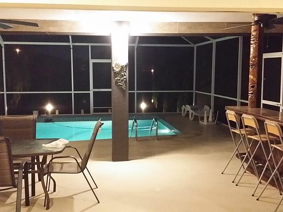 Private swimming poolLight flooded vacation homeScreen protected sun deckWide freshwater canalPatio area