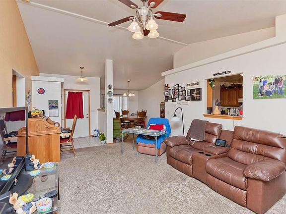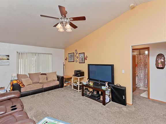 Northeast area rancher on larger lot backing to pasture and canal. Split bedroom design with three bedrooms, two full bathrooms, kitchen with eating area and large dining room. Vaulted ceiling in living room. Covered west facing patio with no close neighbors. Carpet and vinyl flooring. Garage has abundant built in storage and there is a storage shed with electricity and roll up door.