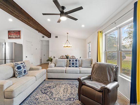 Step into this beautifully updated home featuring an open floor plan with high ceilings, perfect for modern living and entertaining. Offering three bedrooms, two baths, the primary suite stands out with its oversized layout, double vanity, and walk in closet. The home boasts a large backyard and an additional bonus room in the back with extra storage above. Appliance package (refrigerator, washer, and dryer) to remain with property. Situated in a corner lot in a prime location near the Quarry, and highway 281. This property is also part of the highly sought after Alamo Heights school district. Won't last long!!! Please verify room measurements, schools, etc.
