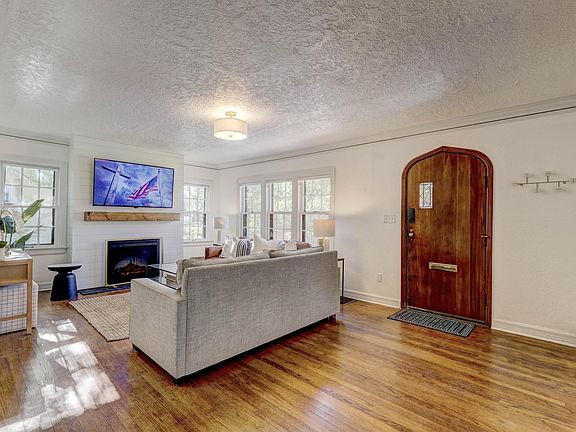 Enjoy the fireplace along with period details such as the arched doorways, french doors, and crown molding that enhance the historical charm.