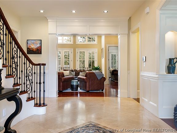 Country French home in executive neighborhood. Custom features throughout home including 8' Mahogany entry doors. Brazilian Cherry hardwood floors on first level. Coffered ceilings in Dining Room & Living Room. Dining Room and Kitchen open to patio with fountain for outdoor dining. Gourmet Kitchen opens to family dining and Keeping Room. Enjoy your view of the lake from the Screened Porch with outdoor fireplace and grill. Master Suite on main level features a fireplace, bath with Air Jetted Tub, walk-in tile shower, double bowl vanity and custom walk-in closet. Large Laundry Room also on the main level with sink and caterer's dishwasher. Upstairs are 3 large bedrooms with en-suite bathrooms, a walk-in Cedar Closet, large 300 sq ft storage area, and laundry area. Lower level features a 32' Family Room, full Bar, 10 seat Theatre, Wine Cellar, Full Bath with steam shower, rubber floor Exercise Room, and 5th bedroom or Executive Office. Outside are patios on the main level and lower level.