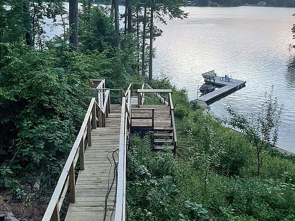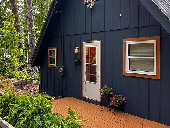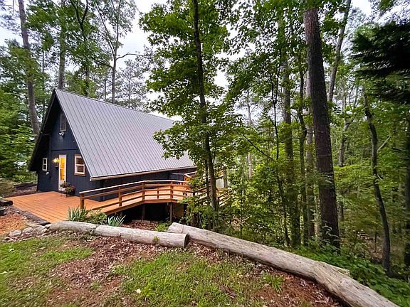 Secluded, Peaceful & Quiet 3 Bd., 1 Ba. A-frame Style Home offers Big Gorgeous Main Lake Views with 8ft water and a Wonderful 110 ft. Sandy Beach! Vaulted Beamed Ceiling in Great Room with Kitchen + Dining and Living Area. Master on Main with Walk In Closet, Full Bathroom Has a Tiled Shower. Extra Room for Guests in Loft and Terrace Level Bunk Area. Sliders Open Up to Deck for Grilling & Relaxing. Lower level Porch/Storage Area and Laundry. Just like a Chalet perched on the side of the slope with a spectacular view. Fiber High Speed Internet, Community Boat Ramp. A little Over 2 hours from Atlanta and it Makes the Perfect Lake Escape! Furnishing & Jet Skis Nego. Home Warranty Included with Sale.