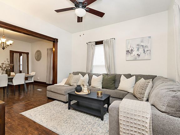 Introducing another listing by Sally H. Tran with HOMEFRONT Real Estate Group. This adorable, well-maintained 2BR, 1BA, 1100 sqft bungalow has a detached one-car garage and a fenced backyard. Featuring beautiful woodwork and high ceilings in both the living room and bedrooms, the home boasts an open and inviting living and dining area. Additional, the lower level offers a partially unfinished basement, currently used as a laundry area, utility room, and extra storage. Recent updates include fresh interior paint throughout, a roof replacement in 2017, and a new sewer line installed in 2022. Low property taxes! For more information or to schedule a private showing, call or text Sally at 785.643.0926!