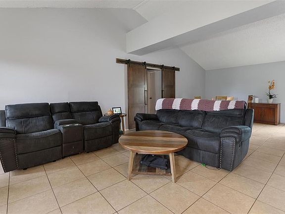 Nestled in the charming community of Deerfield, this well-maintained three-bedroom, two-bath home offers comfort and practicality. The bright living room features high vaulted ceilings and a cozy fireplace, creating an inviting ambiance perfect for relaxation. A stylish barn door off the living room provides added privacy by closing off the two additional bedrooms. The spacious kitchen and dining area, complete with a convenient breakfast bar, are ideal for everyday living and entertaining. With a thoughtful split bedroom layout for added privacy, this home also boasts a large flex room that can easily adapt to your needs—whether as an office, family room, or even an in-law suite with its own separate entry. Sliding glass doors lead to a paved patio and an above-ground pool, all set within a completely fenced yard that ensures both security and privacy. Additionally, a large storage shed provides ample space for your outdoor equipment and hobbies. Located in a convenient area close to shopping, restaurants and are attractions, this property is a true gem! Book your showing today.