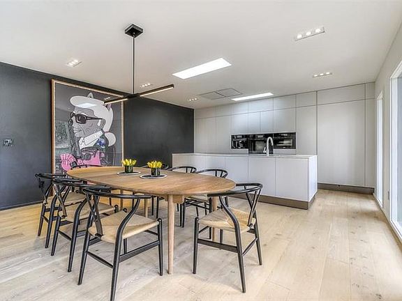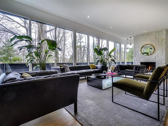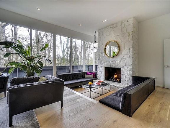 Absolutely exquisite Mid Century Modern renovation perfectly integrated into a private, wooded landscape. Enjoy expansive floor to ceiling window views on both levels and a beautiful wrap around deck. The design, details, and high-quality finishes in this home have been well thought out and executed to make it truly one-of-a-kind. 7" French White Oak wood floors, modern kitchen featuring custom Italian Poliform cabinetry, recessed vent hood by Zephyr, dining room chandelier by Moooi. Home features 3 bedrooms + additional office/flex room which can be used as a bedroom as well. Sunken living room with stunning fireplace on main level. Additional fireplace on lower level. Private courtyard to the front entrance. Two car garage. Corner lot on a cul-de-sac in a quiet neighborhood. Convenient location with quick highway access to the city.