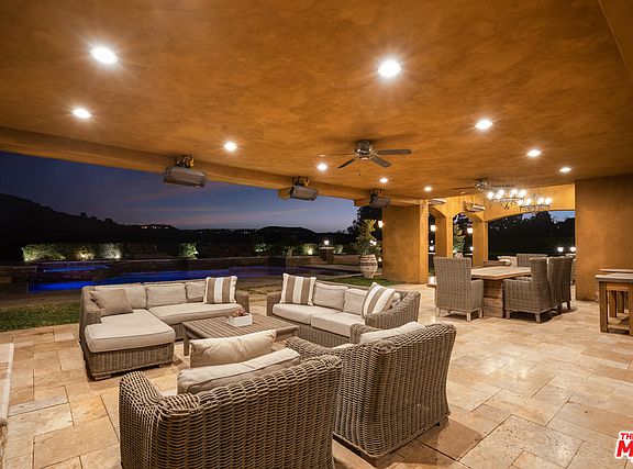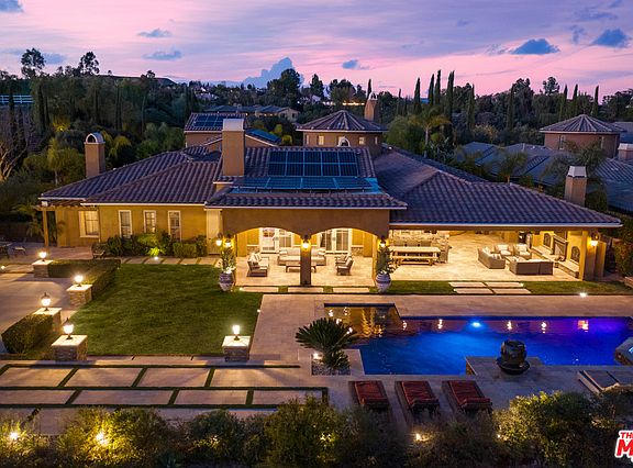 Welcome to Villa Tra Vicini - Enter through iron gates to an exquisite single-story Villa on 1.4 acres. This resort style custom estate offers a main house with 5 bedroom suites, open rooms with soaring ceilings and impressive scale, high-end finishes, and a fabulous center courtyard. Effortless indoor/outdoor flow to a jaw-dropping backyard with manicured grounds, pool & spa, comfortable outdoor living spaces, sport court, privacy, and stunning views. Detached guest house with separate entrance and full bath. Property has paid-for solar panels and is energy independent. Parking for 6 cars - four garage spaces and two driveway spaces. Mureau Estates is an incredibly private gated community with just 11 ultra-exclusive homes.