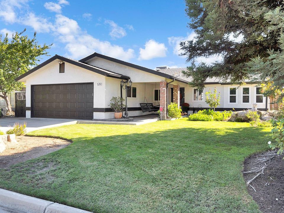 Charming 3 bedroom, 2 bath home in Northwest Fresno offering 1,460 sqft of beautifully cared for living space. The living room features a vaulted ceiling, cozy fireplace, and a warm, inviting atmosphere that flows seamlessly into the dining area and kitchen. A bright sunroom adds extra room, perfect for relaxing or entertaining year round. Step outside to the backyard highlighted by mature lemon, orange, and tangerine trees. Conveniently located near schools, shopping, and with easy freeway access, this move-in ready home blends comfort, style, and everyday ease.