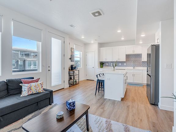 Live in the vibrant heart of Daybreak, just a short walk to the new Bees Ballpark, local restaurants, and community hotspots! This unique two-level condo features a spacious living space filled with natural light from oversized windows, a modern Kitchen with stainless steel appliances, crisp cabinetry, and a spacious pantry. Enjoy the private balcony for morning coffee or evening relaxation. Upstairs, the primary suite offers an en-suite bath and walk-in closet, while the 2nd bedroom and full bath provide the perfect setup for a guest bedroom, library, exercise room, bedroom or home office. The HOA includes exterior building maintenance, snow removal, sewer services, water, and trash, ensuring a low-maintenance lifestyle. As part of the Daybreak community, you'll enjoy access to Oquirrh Lake, miles of walking trails, BBQ areas, fire pits, playgrounds, a community pool, clubhouse, and tennis and pickleball courts-offering endless ways to relax and connect close to home. Schedule a showing and come see this beautiful daybreak gem today!