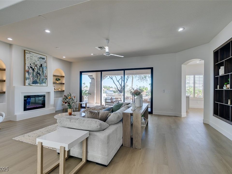 BEAUTIFUL, FULLY RENOVATED HOME IN SIENA, NESTLED IN THE GUARD GATED COMMUNITY IN SUMMERLIN. ONE OF A KIND LOT OVERLOOKING THE 15TH HOLE TEE BOX AND WATER VIEWS. THIS CAPTIVATING SINGLE STORY RESIDENCE HAS UNDERGONE A COMPREHENSIVE TOP-TO-BOTTOM REMODEL, SHOWCASING A FLAWLESS TURNKEY DESIGN. BOASTING 3 BEDROOMS, 3 BATHROOMS, A 3-CAR GARAGE, AND SPANNING 2,994 SQFT, THIS HOME IS A TRUE GEM. IMMERSE YOURSELF IN THE ALLURE OF BRAND-NEW FEATURES, INCLUDING A FRESH INTERIOR & EXTERIOR PAINT, 15' CUSTOM SLIDER, ELEGANT QUARTZ & NATURAL STONE COUNTERTOPS, AN IMPRESSIVE 6' FRONT PIVOT DOOR, CUSTOM SHAKER CABINETRY, 5" SQUARE BASEBOARDS, STATE-OF-THE-ART STAINLESS STEEL KITCHEN APPLIANCES, WOOD-LOOK LUXURY VINYL FLOORING, AND CONTEMPORARY LIGHTING AND PLUMBING FIXTURES.