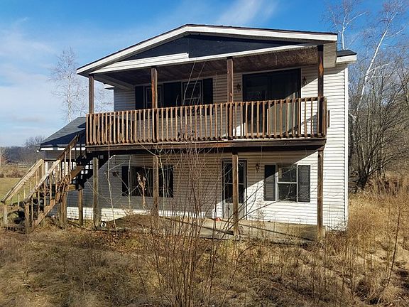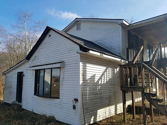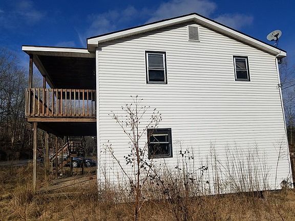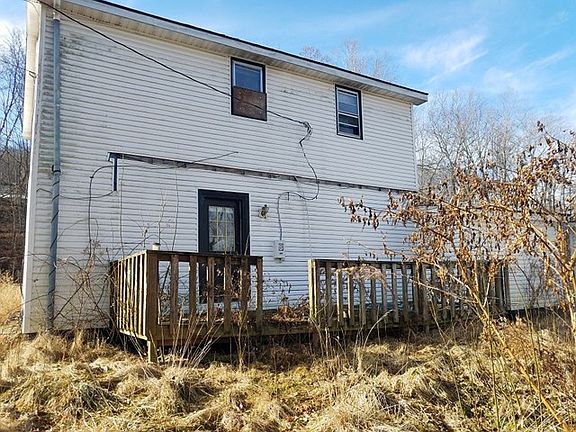Bank owned property has lots of potential.2 buildings for the price of one! In addition to the main house,there is another building which has a 2 car bay garage on the bottom & apartment on top.Main house has a covered balcony in front & wood deck in the rear.There are 2 full baths,one up & one down with oversized detached 1 car garage. Electric box has been stripped & there is some roof damage.