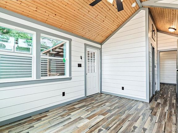 Tiny home available for lease in Johnson City off Hwy 281. Constructed in 2023, the unit features a charming 1-bedroom, 1-bathroom layout with wood-clad cathedral ceilings, shiplap detailing, laminate flooring, and abundant natural light streaming through the windows. Step inside to discover a thoughtfully designed living space with a warm and inviting ambiance. The kitchen boasts white cabinetry and stainless-steel appliances, including an electric range, microwave, and refrigerator, providing everything you need to whip up delicious meals with ease. Relax and unwind in the well-sized bedroom, offering a peaceful sanctuary for rest and rejuvenation. The adjacent bathroom features a convenient walk-in shower, ensuring comfort and functionality. Located in Johnson City, this tiny home offers the perfect opportunity to experience small-town charm while being just a stone's throw away from local attractions, dining, and entertainment options. Schedule a showing today!