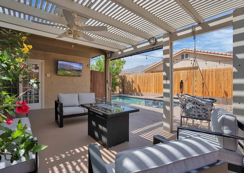 Welcome to this charming home in La Quinta Cove, offering the perfect combination of comfort, style, and convenience--ideal as a starter home, vacation retreat, or simply a place to take pride in. The inviting atmosphere is enhanced by lush plants, mature trees, vibrant flowers, and a cozy firepit, making it the perfect spot to relax and enjoy peaceful evenings. This 3-bedroom, 2-bathroom home features a sparkling saltwater pool and spa, perfect for cooling off or unwinding. Inside, you'll find newer plank tile flooring throughout the bedrooms and beautifully remodeled bathrooms. Recent upgrades include a new pool heater, pool automation system, salt system, mini pebble pool surface, LED pool/spa lights, and desert-friendly landscaping, ensuring low-maintenance beauty and efficiency. Additional features include a newer washer and dryer, a spacious 2-car garage, and a thoughtful layout that offers more space than it may appear at first glance. Located just a short walk, bike ride, or golf cart ride from downtown La Quinta, you'll have easy access to Old Town's vibrant shopping, dining, and entertainment, along with the nearby Pickleball courts. This home offers everything you need for a laid-back desert lifestyle, and with all its recent updates, it's truly move-in ready. Don't miss out on this wonderful opportunity to own a beautiful home in one of La Quinta's most desirable areas!