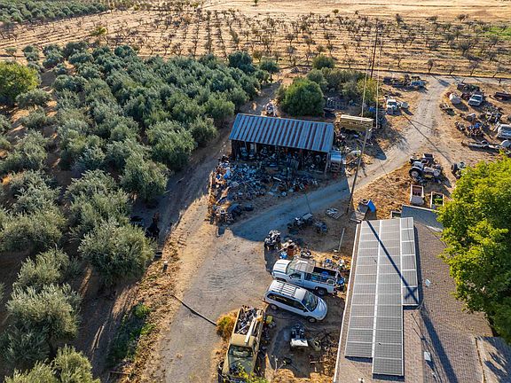 This 3-bedroom, 2-bath home sits on just under 50 acres, made up of five connected 9.91-acre parcels. The house features a galley kitchen, cozy living room with a fireplace, and a large sunroom with big windows that let in tons of natural light. There’s also extra storage space throughout the home. One of the parcels has a well-established olive orchard with three different varieties. The property includes a huge barn, a large storage building, and two wells—one of which is solar-powered to help cut down on electricity costs. There’s plenty of space for animals, gardening, orchards, hobby farms, or just enjoying the wide open land. Great opportunity to live the country lifestyle with room to grow!