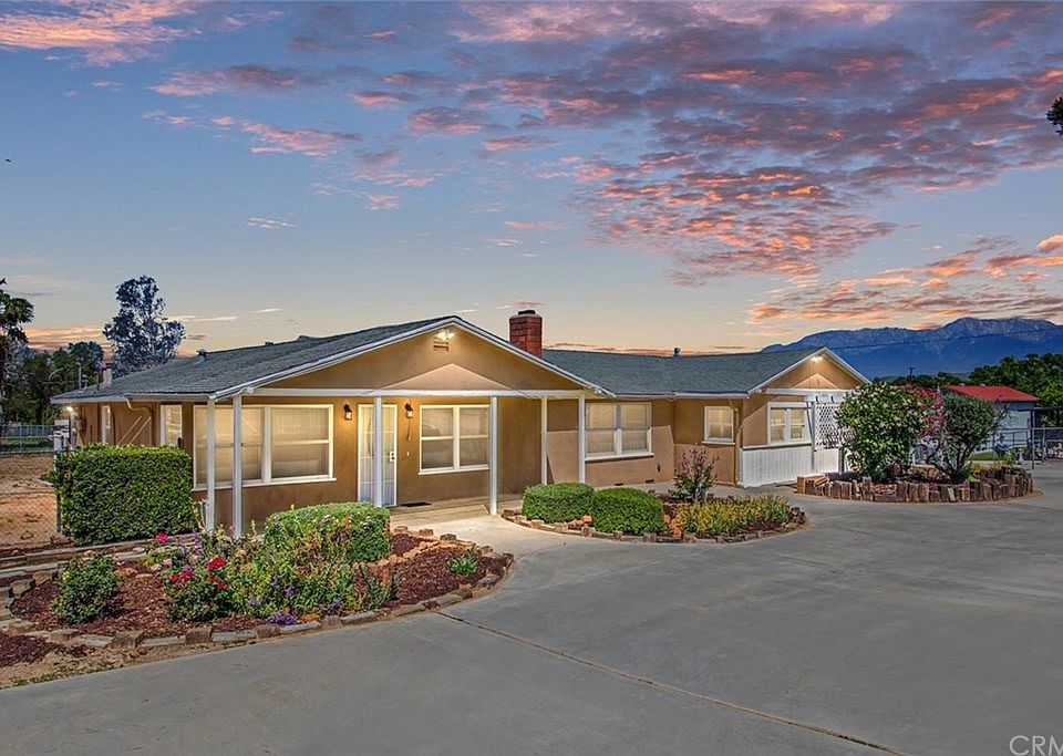 Beautiful 1-full acre flat horse property on corner lot. Unique single story 4 Bedroom ranch style home with bonus walk through room perfect for den or other creative use. 2-bathrooms, one with tiled upgrades and a jetted tub, the other with a walk-in shower. Living room features a corner fireplace and a dining area at the entrance of the kitchen. The kitchen is spacious with tiled countertops, built in double oven and stovetop, lots of storage and breakfast bar leading to the formal dining room. Upgraded vinyl windows. In the back yard you will find partial privacy enclosure, a Zen garden with water feature, firepit, and a covered patio for entertaining. The homeâs original floorplan was 3 bedrooms and an attached garage that was converted in a workmanship manner to include 2-additional bedrooms with large closets and the 2nd bathroom adjoined by a walkthrough room and hallway with direct access to the laundry room which also features a double wash basin and separate entrance leading to the back of house. Gorgeous landscaped entry with circular driveway. The 2-car detached garage is oversized with workbench and side entry. Additional parking for guests and room for your RV and toys. Half of property is fenced off for horses or other livestock with separate dog run. This property is a must see for business or livestock owners or large family. Note: Home was virtually staged to show potential use of décor.