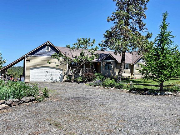 VIEWS galore! 20 acres of privacy, newly expanded back deck and spectacular views all the way to Chewelah! This updated 2000 sf rancher consists of 3+ bedrooms, 2.5 baths, an office (with a closet that could be your 4th bedroom), a 2-car attached garage plus a heated and insulated 22X50 shop with finished work spaces for crafts, workout room and room for a bathroom. Fantastic oversized, main-floor primary suite with giant closet, vaulted ceilings, full bath with double sink vanity and a slider right out to the back deck and hot tub. Very low maintenance acreage w/ front yard sprinklers, large garden and 12X24 garden shed, a pond, and tons of additional acreage right out your back door! An abundance of wildlife and history in this spectacular property.