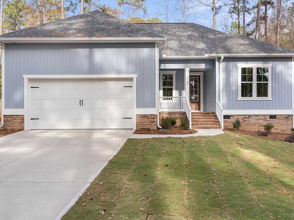 Welcome to your brand new, idyllic dream home in nature lover's paradise. It is situated in Carolina Trace, one of the area's most sought-after golf and lake communities! This stunning new construction one-story home features 3 spacious bedrooms, 2 full bathrooms, an ample upstairs loft, and sits on a serene private lot that offers both tranquility and exceptional lifestyle amenities. Designed with modern living in mind, the open-concept layout seamlessly blends the gourmet kitchen, dining, and living areas—perfect for both everyday comfort and entertaining. High ceilings, designer finishes, and large windows bring in abundant natural light while offering scenic views of the surrounding natural beauty. The luxurious primary suite includes a walk-in closet and a spa-inspired en-suite bath with dual vanities and a walk-in shower. Two additional bedrooms and a full bath provide ample space for family, guests, or a home office. All of this plus a STRUCTURAL WARRANTY provided by the builder. Enjoy the lifestyle you've always wanted with access to championship golf, sparkling lakes, walking trails, and a welcoming community atmosphere—all just steps from your front door. Carolina Trace covers 2,500 acres with creeks, ponds, rolling hills, walking trails, 315 acre Lake Trace for boating, kayaking, & fishing. Carolina Trace's clubhouse is home to fine and casual dining, a full-service Pro Shop, a fitness center and exercise rooms, as well as a myriad of social activities. Two 18 hole championship golf courses (Robert Trent Jones World Class), member owned country club! Short drive to Fayetteville, Cary, Apex, Pinehurst, Pittsboro, Siler City and Raleigh. Awesome gated community-24 hour security! Don't miss your chance to own this brand-new gem on a quiet, private lot in a premier location. Schedule your private tour today!