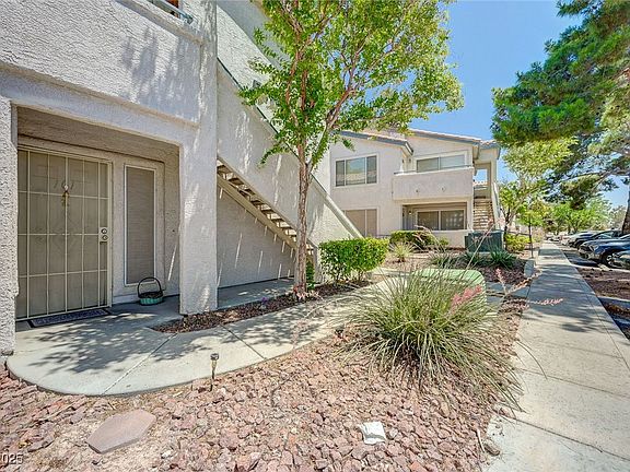 Beautiful first floor condominium is in a gated community of Canyon Willows. As you enter this open, airy and bright open floor plan, you will be greeted with an upgraded living room adjacent to it is large balcony that opens to the living room & bedroom. You will also see the cozy kitchen that has granite counter top. The spacious en suite has its own walk in closet, Double sinks and soaking tub in the bathroom. Laminate all through flooring and tile floor for the bathroom area. Grand patio that you can enjoy drinking coffee in the morning .Convenient location near the airport, Strip, shopping, and freeways. Community has a clubhouse, pools, spa. Convenient location near the airport, Strip, shopping, and freeways.