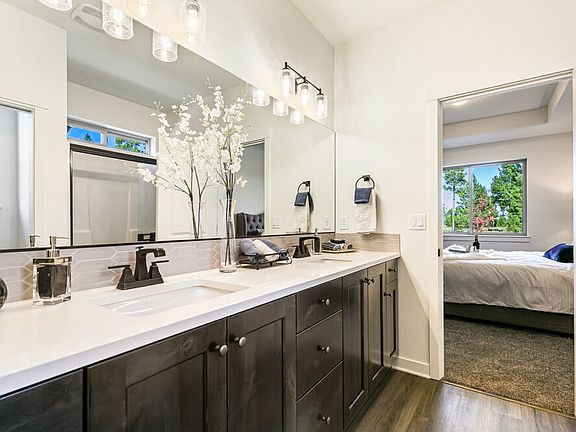 Coffered Ceilings in Entry and Master Bedroom Vaulted Great Room with Electric Fireplace Kitchen Island with Bar Seating Plus Walk-In Pantry Master Suite with Walk-In Closet and Double Sinks Laundry/Mud room Access from Garage Pocket Den Home Smart Technology