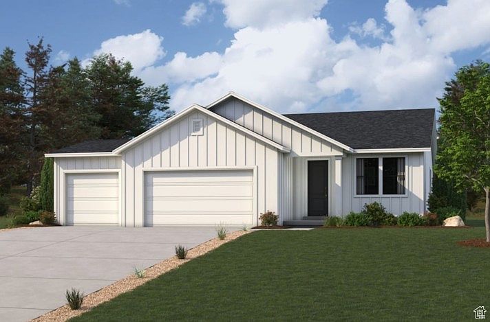 Welcome to the Grand Opening of Pinnacles Estates in Eagle Mountain, now offering the Champlain plan. A contemporary layout showcases an open kitchen with an island and a walk-in pantry, overlooking a dining area and an airy great room with access to the backyard. The luxurious primary suite is adjacent, featuring a walk-in closet and a deluxe private bath with dual vanities, a walk-in shower, and a soaking tub. Two additional bedrooms, one with a walk-in closet, round out sleeping space. You'll also find a private study in this plan right off the front entry. Includes unfinished 9' basement. Community amenities include a park, walking trails and picnic areas, frisbee golf at open space, making it easy to stay active and connect with neighbors. Discover your dream home at this Eagle Mountain community!