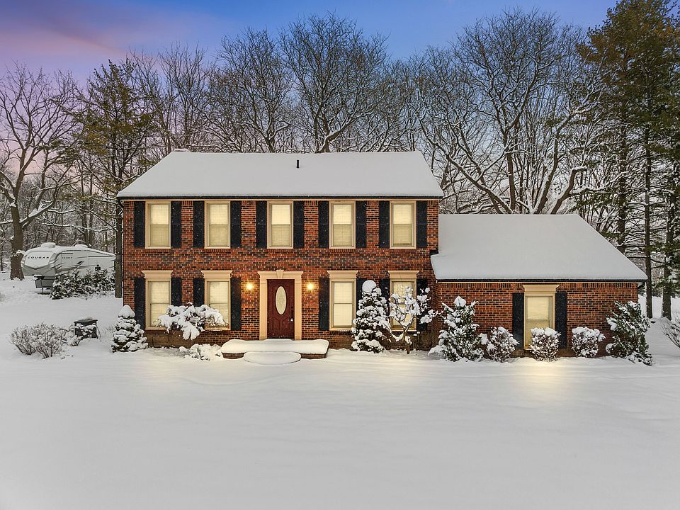 Welcome to your new home located in popular Coach Lamp Hills sub. This 4 bedroom colonial sits deep with a private fantastic sized yard, almost 1/2 acre, perfect for outdoor entertaining with a large deck & patio. Roof may be from 2019. Custom kitchen with walnut cabinetry, granite counters, SS appliances, huge dining space plus pantry. Kitchen opens to extended family room with gas fireplace plus doorwall to screened sunroom. French doors from foyer & kitchen lead to a bright library study. Hardwood throughout main floor. Upstairs has a large master with private own full bath. Brand new carpet throughout the upstairs, 3 additional bedrooms, all good-sized. Full bath with double sinks & extra linen closet. Finished basement offers huge recreation room plus bonus room with egress. Convenient main floor laundry. Whole house generator and custom blinds throughout.