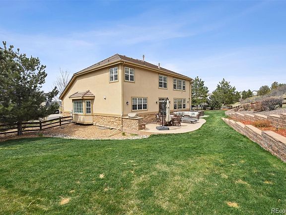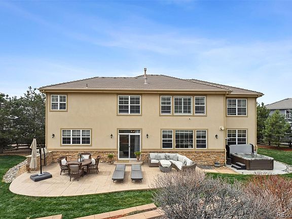 Stunning Meadows Estate Backing to Open Space! Discover this exceptional home in a coveted Castle Rock location. Situated at the top of a quiet cul-de-sac on an expansive lot, it boasts breathtaking western slope views and serene open space behind. The grand entry welcomes you with a sweeping staircase and abundant natural light. Inside, every detail has been upgraded, from the bright gourmet kitchen with leathered granite counters and high-end appliances to the elegant tile flooring throughout the main living areas. The spacious family room features a fireplace and built-ins, while the main floor also offers a versatile office with a full bath. Upstairs, the incredible primary suite includes a flex space with a coffee bar and fireplace, a spa-like bathroom, and an enormous walk-in closet. Three additional bedrooms, including a Jack-and-Jill and a private en-suite, provide ample space. The fully finished basement is an entertainer's dream with a living area, game space, workout area, wet bar, and an additional bedroom and full bath. Outside, the massive backyard features a custom patio with a built-in BBQ, a hot tub, and professional landscaping, all backing directly to open space.