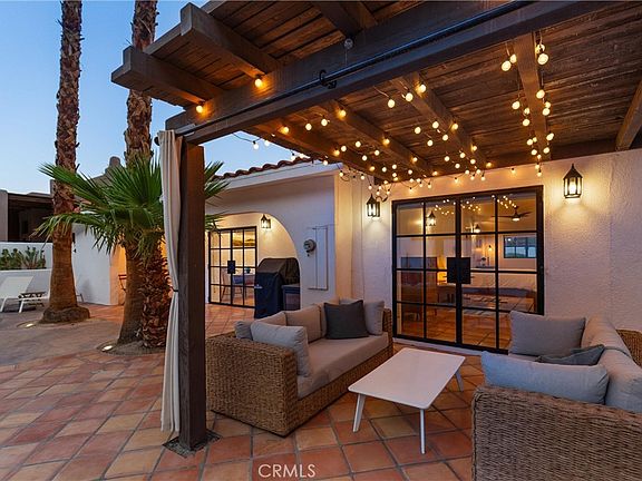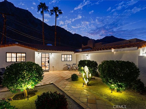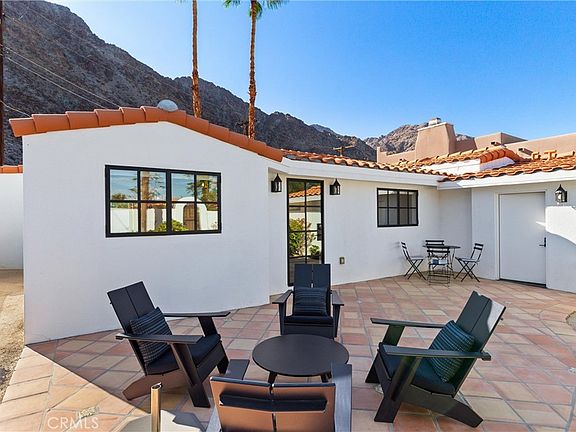 Discover the magic of old California at this extraordinary 1930s Spanish Casita, one of only 60 original homes built in the Historic La Quinta Cove. Nestled on a prime corner lot with breathtaking unobstructed mountain views, this rare desert treasure perfectly marries authentic period charm & modern luxury with no expense spared. Step through the gates into your private courtyard oasis, where flourishing citrus trees add charm to the enclosed front patio. This intimate space captures the perfect morning sun to take in the dramatic mountain backdrop. The heart of this casita is the beautifully remodeled kitchen, featuring premium Bertazzoni induction range, Viking refrigerator/freezer, & KitchenAid dishwasher. The fully furnished turnkey home creates a seamless transition from indoor to outdoor living through dramatic double glass French doors that open wide to blur the lines between the remodeled interior & your private backyard sanctuary, where a saltwater pool, built-in Santa Maria grill, & plenty of space for entertaining await. The covered lounge area provides the perfect retreat for enjoying your private slice of desert paradise. The living room showcases the home's original character with its historic fireplace, while beautiful saltillo tiles flow throughout the home. Individual mini-split systems & elegant Minka Aire ceiling fans ensure year-round comfort throughout. The primary suite offers direct patio access, stunning mountain views, & an en suite bath adorned with handcrafted American Southwest tile work. On the opposite side of the home, two additional bedrooms share a jack-and-jill bathroom. This corner lot paradise sits directly adjacent to the mountains and across from Montezuma Street's popular biking & hiking trails with access right out of your back gate. Located just minutes from Old Town La Quinta, which features many dining & shopping options, as well as a weekly Farmers Market, the La Quinta Art Festival, and more. The home is perfectly positioned near championship golf courses, Indian Wells Tennis Garden, Acrisure Arena, and Indio's world-famous music festivals. Downtown Palm Springs is less than 30 minutes away, placing you at the heart of the desert's premier entertainment destinations. This property includes an EV charger and benefits from the Valley's lower utility rates. A once-in-a-lifetime opportunity to own a piece of La Quinta Cove history – where 1930s Spanish colonial architecture meets today's luxury desert lifestyle!
