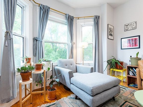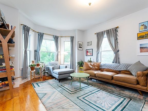 Incredible Union Square location! One block from the bustling square, yet tucked away on a lovely tree-lined side street. Converted and renovated in 2017 this 2 bedroom, 1 bathroom condominium is convenient to locally owned restaurants, Market Basket, transportation; and a vibrant arts and community scene! Highlighted by its gorgeous original Florida wide-pine floors, this unit boasts high ceilings, a bow front living room, and charming bullseye window trim. The layout is comprised of a spacious living room, large bedroom with 2 closets, a smaller bedroom and a coveted study for work from home needs. The kitchen is designed with white shaker cabinets, granite countertops, ss appliances, and has a large peninsula for dining. Bathroom outfitted with a walk-in shower, tiled floor, built-in shelves and medicine cabinet. A shared yard, in-unit laundry, a healthy condo reserve, lead paint compliant and pet friendly building makes this a desirable home for the discerning Somerville buyer!