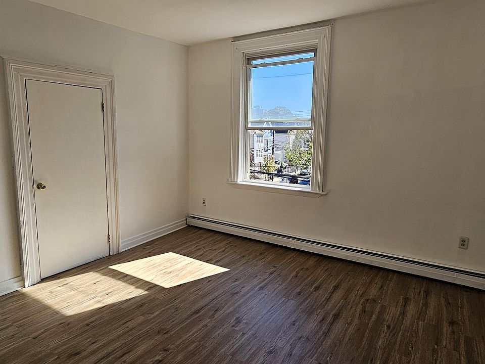 Private room featuring a large window, located on the second floor with abundant natural sunlight and a pleasant corner view. The room offers high ceilings, a built-in closet, and has been fully renovated with new hardwood flooring.