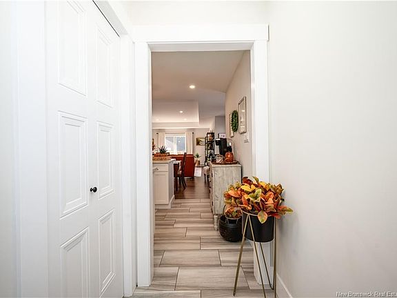 EXECUTIVE SEMI IN MOUNTAIN WOODS! NORTH MONCTON LIVING AT ITS BEST! WELCOME TO VILLAGE ON THE GREEN, A PEACEFUL CUL-DE-SAC, BORDERING ON MOUNTAIN WOODS GOLF COURSE, WHERE ELEGANCE & EASY LIVING COME TOGETHER! This executive semi-detached bungalow offers 1,220 sq. ft. of one-level living, showcasing exceptional craftsmanship, thoughtful design, and modern comfort throughout. The spacious front entry leads to a bright, open-concept living and dining area enhanced by a 9-ft tray ceiling, large windows, and sliding doors leading to a south-facing covered back deck, perfect for morning coffee or evening gatherings. The custom kitchen impresses with ample counter space & cabinetry and a walk-in pantry to keep everything organized. A convenient main floor laundry adds everyday ease. The primary suite is a peaceful retreat featuring a walk-in closet and private ensuite bath. A second bedroom (or ideal home office) and a full guest bath complete the main level. The unspoiled walk-out basement provides an excellent opportunity to add living space and build instant equity. Outside, enjoy the covered front porch, paved driveway, and fully landscaped yard. Efficient climate control is provided by electric baseboards and a ductless mini-split heat pump/AC. This home delivers space, style, and serenity, perfect for those looking to downsize without compromise in one of Moncton’s most desirable communities. Appliances included. Taxes currently reflect non-owner occupancy. Message now to view