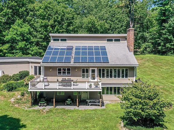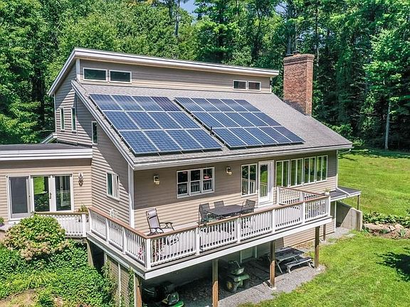 Welcome to 52 Barton Rd! You will fall in love with this sun filled contemporary home,complete with solar panels and GEO thermal heat for maximum efficiency. The tiled entry way with triple french door leads to a kitchen/living room/dining room combination with cathedral beamed ceilings, tons of windows, and balcony. The cabinet packed kitchen is every cooks dream with center island, double wall oven, and built in butcher block. Living room with floor to ceiling brick fireplace opens to the 24 foot deck overlooking the perfectly manicured grounds. First floor master bedroom with private full bath and built in shelves. Second floor with 2 bedrooms, en suite bath, and laundry. Walk out lower level with 2 additional rooms perfect for a great room, private office, or den. Screen porch is perfect for those summer/fall nights. Oversized 2 car garage features plenty of storage space. Walking distance to Lake Boon and Pine Bluff Recreational Area.