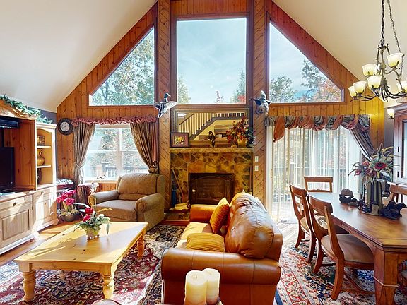 Beautiful 2 bed, 2 bath chalet with mountain view from loft! This home is on over 1+/- acre in a private setting just outside of town. Parking & fire pit area with 2 tool/storage sheds on the property. Step inside to find vaulted ceilings with large windows in the living room that let the natural light in. Granite countertops and SS appliances in kitchen. Laundry room & pantry area on the main level. Large stone gas fireplace in the living room will keep you warm & cozy. Mountain view from the master bedroom in the loft area with large walk in closet. Recent improvements include Whole House Staining, Fence for animals, barn door for the loft! If you're looking for a mountain chalet that is ready to move in this is the one! 3D Virtual Tour Available!