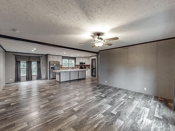 Looking for a serene place to call home, this 4-bedroom, 2-bathroom all one level home offers beautiful countryside views! Step inside to see an open floor plan and no carpet in sight! Spacious living room featuring a ceiling fan plus a den, great for enjoying everyday life! The kitchen serves as the heart of the home, boasting a large island with bar seating, an awesome walk-in pantry, a farmhouse sink, a stylish backsplash, a range, a built-in microwave, a dishwasher and refrigerator! A picture window overlooks the backyard, filling the kitchen with natural light! The dining room is ideal for family gatherings and entertaining friends! The owner suite provides a peaceful retreat with a ceiling fan! Ensuite with a double sink vanity, a soaking tub with built-ins, a separate shower, and a generous walk-in closet! Three additional spare bedrooms, offer ample space for loved ones or guests! A convenient guest bathroom! The laundry room has enough room for a deep freezer! Step outside to discover a spacious deck, ideal for relaxing evenings outdoors! Don't miss this opportunity to make this lovely ranch home yours! Home has already been detitled and on a permanent foundation.