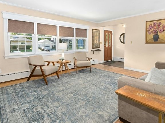 Charming ranch-style home situated on a prime corner lot in a highly sought-after neighborhood. Set on a large, beautifully landscaped property, this well-maintained home offers both comfort and possibility. Inside, hardwood floors run throughout the main level, where a spacious living room features a bay window and custom built-ins. The updated kitchen showcases granite countertops, newer appliances, and flows seamlessly into the dining area. Sliders open to a gravel patio that overlooks a generous, fenced-in yard complete with garden beds perfect for outdoor gatherings, gardening, or quiet relaxation.A standout feature is the outdoor shed, thoughtfully converted into a stylish bar and entertainment center, offering a unique space for hosting year-round. The first floor includes three bedrooms and a full bath, while the finished basement adds valuable living space with a dedicated office, second full bath, and a bonus entertaining area equipped with a bar sink, wine fridge, and countertops. A full walk-up attic offers exceptional storage or expansion potential. With its flexible layout, expansive lot, and unique amenities, this home offers endless opportunities to live, relax, and entertain in style.