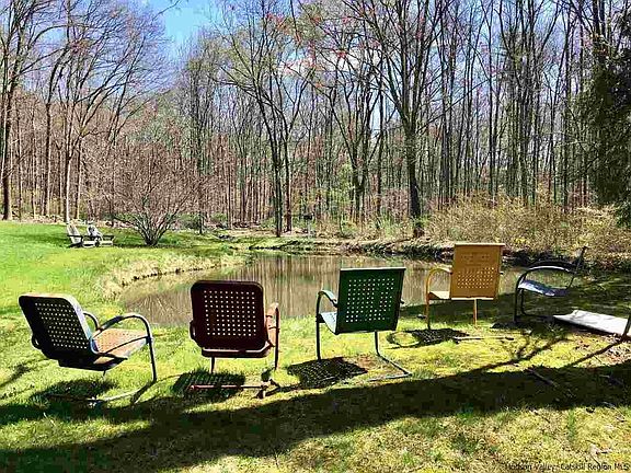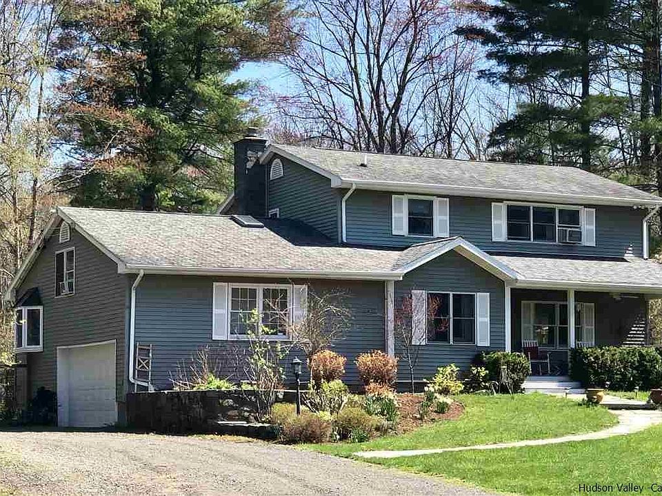 Perched atop a hill tucked off desirable Buck Rd, overlooking stunning meadows, home to thoroughbred horses, sits this bright and sunny home that has found a fresh look with a contemporary space with an open floor plan and lots of additional rooms for private space. The open living room, dining room and kitchen are perfect for entertaining. Sliding glass doors lead to a rear deck with steps to an expansive back yard leading to a stocked pond (koy, bass & trout). Need a quiet moment to hideaway and read a good book, or watch a movie? There is a charming and cozy family room with a brick fireplace overlooking the rear yard's tranquil setting. Up a few steps (labeled as level 3) from the main level is a perfect office, studio space, or den, with high ceilings and great light. Two guest rooms and a spacious ensuite master bedroom complete this perfect picture. Sit on the front porch in your favorite rocking chair and watch the horses frolic and the deer dine! Wildlife abounds on this property. Watch the fish jumping in the pond while the blue heron, red tail hawks and an occasional eagle soar overhead as well as the deer in the distance ( behind the deer fencing!!) in your surrounding woods. There are even wild turkeys, an occasional fox and black bear. All of this, just minutes to the center of historic Stone Ridge and close to all that High Falls, Uptown Kingston and Woodstock have to offer.