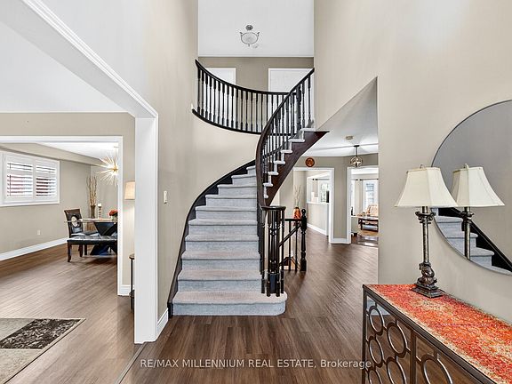 This exceptional former model home offers over 4,400 sq. ft. of living space (3,033 above grade+ 1,388 finished basement) on a premium 187-ft deep lot in one of Cambridges most desirable communities. Recently renovated throughout, this residence combines elegance, comfort, and functionality for todays modern family. The main level features a grand foyer with curved staircase, a sun-filled living and dining area, and a spacious family room with hardwood floors and a gas fireplace. The custom kitchen is designed to impress with quartz counters, stainless steel appliances, pantry, oversized island, and a breakfast area with built-in cabinetry, coffee bar, and walkout to the deck. A powder room and laundry/mudroom with garage and side access add convenience.Upstairs, discover 4 generously sized bedrooms, including a primary suite with double-door entry, walk-in closet, and spa-like ensuite with soaker tub. The finished basement offers 3additional bedrooms (or flexible office/den spaces), a large rec room with wet bar and built-ins, pot lights, and ample storage.Exterior highlights include metal roofing, a double garage with storage racks, stamped concrete driveway, and a fully fenced backyard with deck, sprinkler system, and green space for entertaining. Ideally located near Hwy 401, top schools, shopping, parks, trails, and multiple places of worship, this move-in ready home is a rare opportunity in North Galt.