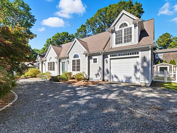 Nestled in the sought-after Maravista neighborhood, just a few homes to tranquil Great Bay Pond, this contemporary Cape Cod-style home blends coastal charm & modern living. Step inside to a sun-drenched interior, where walls of windows fill the open-concept floor plan with natural light. The modern kitchen flows seamlessly into the designated dining area & inviting living room, complete with a cozy gas fireplace. The first-floor primary suite offers comfort & convenience with a private ensuite bath, while a laundry room & half bath round out the main level. The back wall of the first floor opens entirely to the outdoors, with sliders leading to an expansive deck designed for effortless entertaining. A built-in gas line for grilling, an outdoor shower, built in firepit & perennial gardens create the perfect coastal gathering space. Upstairs, 2 spacious bedrooms are anchored by a generous living area. Beyond the home, the coastal lifestyle awaits. Enjoy a neighborhood walking path along Great Bay, access to inlet beaches, public ramp to launch boats, & a short trip over to Martha's Vineyard. Home is being sold furnished minus staging. Sewer betterment to be assumed by buyers