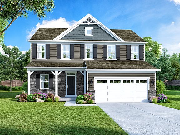 The Queensworth is a beautifully designed new construction home offering 2,433 square feet of modern living space, ideal for buyers searching for new homes in Carlisle, Wilmington, Trenton, or West Chester Township. With 4 bedrooms and 2.5 bathrooms, this two-story layout provides both space and versatility.The main level features 9-foot ceilings and an open kitchen with island and walk-in pantry that flows into a spacious great room. Optional features like a fireplace and transom windows enhance both comfort and natural light. A private study off the foyer adds flexibility for work or guest use, while the mudroom off the garage offers a storage closet or optional built-in cubbies.Upstairs, the grand bedroom includes a walk-in shower, double vanity, and oversized walk-in closet. A second-floor laundry with optional sink adds everyday convenience. With the option for a 2- or 3-car garage, the Queensworth is ideal for families seeking spacious new homes in Southwest Ohio with thoughtful design and modern amenities.