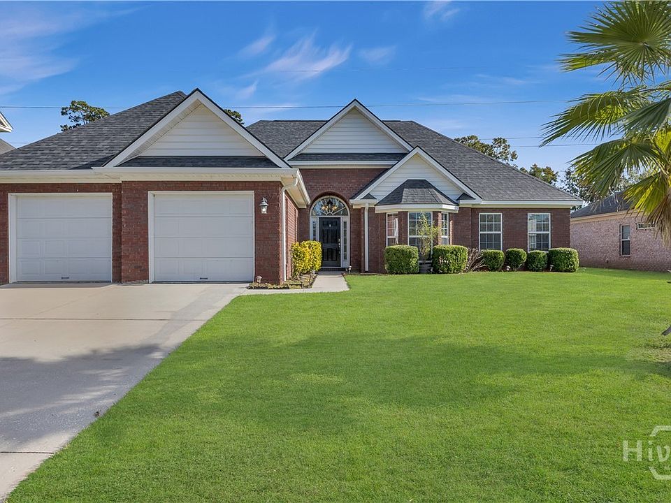 Come home to this Beautiful All Brick Ranch in Gateway Village Community! This Executive Home features 3 bedrooms, 2 baths, a split floorplan with a large family room with custom shelving, and formal dining room with crown molding and real hardwood floors. The galley-style kitchen includes Corian countertops, lots of cabinets, a breakfast bar, pantry, and stainless appliances. The expansive Owner's Suite is a true retreat, complete with a cozy sitting area, custom shelving in the large walk-in closet and private access to the patio. The Owner's bath features marble double vanities, a jetted tub, and a separate shower. The home also includes a bright sunroom with a private entrance that's perfect for a home office. Additional highlights include a spacious laundry room with cabinetry, no carpet throughout, a privacy fence yard and a 2 car attached garage. This well-maintained all-brick ranch offers timeless appeal and comfort, making it a must-see for buyers seeking a 1-story Oasis!