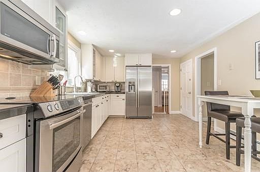Buyer didn't qualify for financing. Their loss is your gain! Extensively remodeled & updated this spacious house has something for everyone. You'll love cooking in the eat-in kitchen with stainless appliances, classic white cabinets, & granite tile counters. The adjacent sun room is often awash in natural light & is the ideal place to sip coffee or do some reading as you admire the beautiful near acre lot. Alternatively, retreat to the secluded office to work. The 1st floor also features laundry, a fireplaced living room, a fireplaced family room, 1/2 bath, & dining room. Upstairs you'll love that this house has 5 well proportioned bedrooms & 2 full baths including a master suite with double closets & a lovely Carrera marble bath. Lower level has your dream theater room with HD projection system & surround sound plus mudroom, 2 car garage, & storage. Enjoy the natural beauty of the property on the 2 stone patios one with built in fire pit ideal for marshmallow roasting. Welcome home!