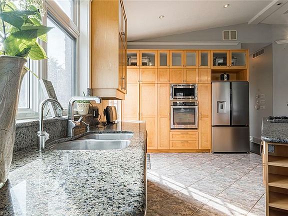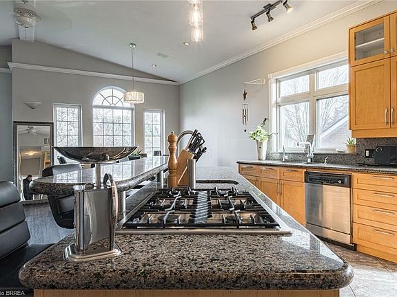 Welcome to your dream home! Nestled in a serene & picturesque setting, this home boasts a backyard that backs onto farmers fields, offering tranquility & stunning views. As you enter this magnificent abode, you'll be greeted by an open concept kitchen/living/dining area, perfect for entertaining guests or cozy family nights by the fireplace. The garden doors leading to the deck seamlessly blend indoor & outdoor living, providing a refreshing and inviting atmosphere. With 2bdrms on the main floor and 2bdrms in the lower level, this home offers ample space for a growing family or perfect for entertaining. The master bdrm is a true oasis, featuring a soaker hot tub where you can unwind and relax after a long day. Convenience is at your fingertips with main floor laundry, making household chores a breeze. The kitchen is a chef's delight, adorned with beautiful maple cabinets and an abundance of storage space. Plus, with built-in appliances including an oven, microwave, and dishwasher, meal preparation becomes effortless. Added bonus, heated flooring! The lower level of this home was completely redone in 2021, showcasing modern finishes and a walkout. The fireplace adds a touch of warmth and coziness, creating the perfect ambiance for cozy nights in. Located in a small and quiet town, this home offers a peaceful and serene environment away from the hustle and bustle. Yet, it's just minutes away from major highways 403 and 401, ensuring convenient access to shopping, dining, and entertainment. But wait, there's more! This home also features an irresistible inground pool, complete with an outdoor bar equipped with hydro, a bar fridge, and a TV all adorned by flagstone. Imagine lounging by the pool, sipping your favorite beverage, and watching your favorite show - absolute bliss! Don't miss out on the opportunity to call this remarkable house your home.