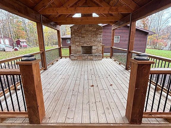 "Unrivaled year-round lake views!!! Designed with remarkable craftsmanship, this brand-new, 4-bedroom home offers an open and inviting floor plan delivering a truly unparalleled living experience in the highly sought after Bray Run community. Upon entering, you are greeted with a dramatic wall of glass showcasing the incredible four-season panoramic views of Deep Creek Lake and the surrounding mountains. Soaring cathedral wood ceilings and a grand natural stacked-stone fireplace create a warm and cozy atmosphere on the main level. A modern kitchen with granite countertops, stainless steel appliances, and a custom-made island opens to the spacious dining room for gathering with family and friends. An expansive deck provides additional space for outdoor entertaining and enjoying the serene, nature-filled surroundings. You can retreat in the luxurious master bedroom ensuite, containing a spacious walk-in closet and elegant master bath with a custom-built tiled shower and premium fixtures. Upstairs, an open loft is ideal for a game room, lounge, or home office. On the lower level, 3 additional bedroom ensuites offer both privacy and tranquility. The home’s picturesque charm shines in the spacious family room with its own stacked-stone fireplace. A stylish powder room and oversized storage/mechanical room complete the lower level. The gently sloping lot is perfectly suited for the home’s walkout basement, maximizing living space on the beautiful stamped-concrete patio. Step outside to enjoy fresh mountain air under a custom-built covered pavilion featuring a stunning natural stone, wood-burning fireplace, perfect for creating outdoor memories in any season. Crafted with the highest standards in design and construction, other noteworthy features include a main-level laundry room, central air conditioning, and a sprinkler system throughout. The Bray Run subdivision offers a private and picturesque recreational area with a playground, basketball/sports court, and scenic walking paths along Bray Run stream. Other community amenities include high-speed internet, cable, and lighted streets. Located just minutes from Swallow Falls State Park, Fork Run Recreation Area, Wisp Resort, shops and restaurants, this home offers the perfect blend of privacy, elegance, and accessibility."