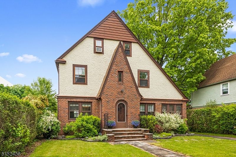 This four-bedroom, three-bath Tudor features charming original details. Wood floors, French doors, chestnut trim (a rare and valuable find), fireplace with built-in leaded glass bookcases. The sunroom off the Living Room leads to an enclosed rear porch. Stainless steel appliances in the dine-in kitchen. Partially finished basement with pine paneling. Spacious rooms and ample closets throughout. The deep, fenced-in yard features a 500-square foot patio and fire pit area. Just steps to NYC bus and close to train. Brand new ductless central air, most rooms freshly painted, newer PVC sewer line. The eclectic Walnut Street area with its shops, restaurants and Farmer's Market is just a stone's throw away!